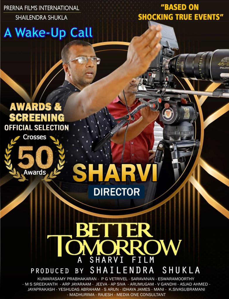 Through the film, the Director attempts to convey courage to people suffering from addiction problems and Psychological effects caused by drug overdose. It also shows how circumstances can help a person wake up to their dependence and consciously walk away from it. Shailendra shukla is producing this film under Prerna Films International banner in Sharvi’s direction. P G Vetrivel is handling the cinematography while Eswaramoorthy Kumar is the editor and Kumarasamy Prabhakaran as the music composer Saravanan is the executive producer. Maanav played the lead role and Gowri Gopan played the female lead while Boys Rajan, Jagdish DharmaRaj, Shailendra Shukla, RG. Venkatesh, Saravanan, Divya Siva are playing other important characters. Tamil Cinema Better Tomorrow crosses 50 Awards milestone